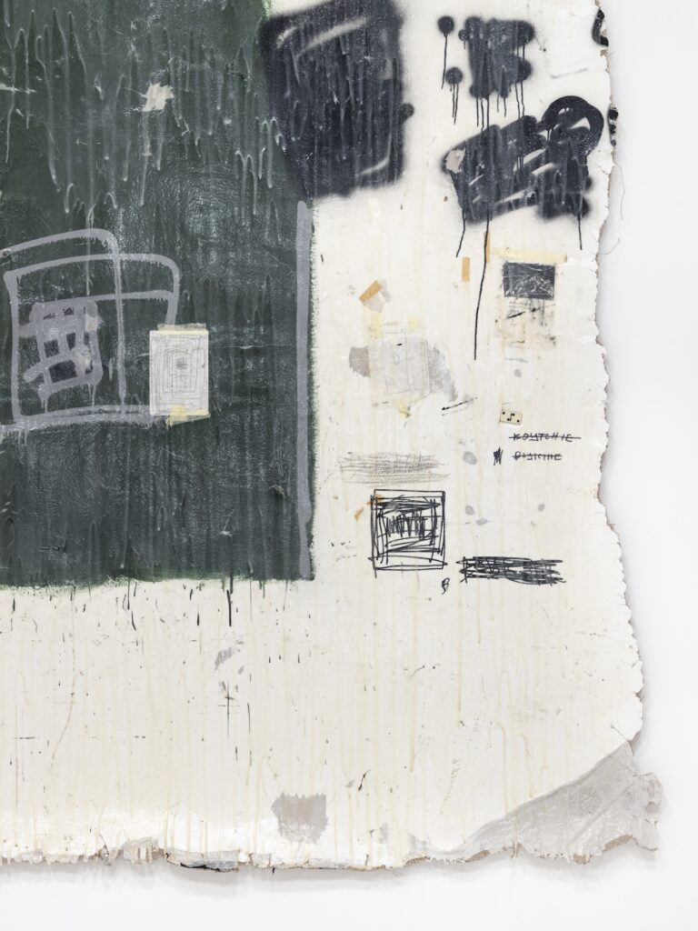 His second solo with the gallery, Group Show (2025), further refines his surface transfer technique in a study of lifted walls and floors from the studios of artists working in South Africa. The series of extractions gives form to Bineshtarigh’s curiosity around artists’ creative processes, with each work carrying layers of history and energy from its original site, the studio.